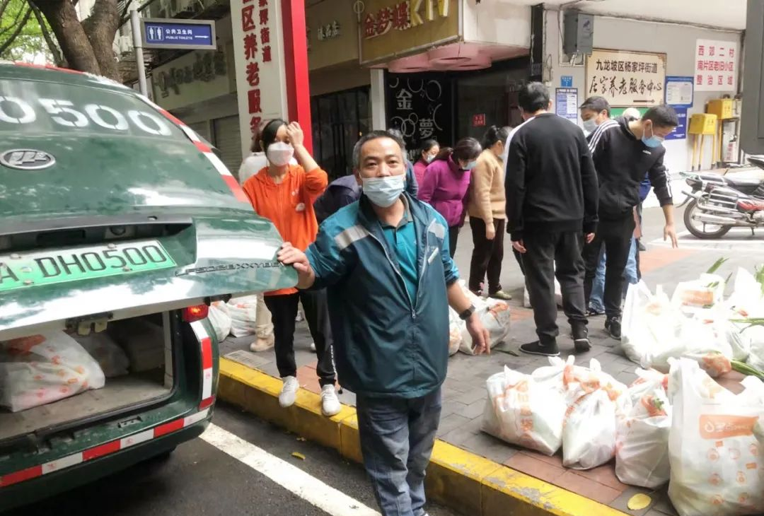 在渝北区龙溪街道,一支由中通加州网点“快递小哥”组建的志愿者服务队正在快速卸货。“车里的物资都是提前按袋子分配好的,里面装有白菜、萝卜、花菜等新鲜蔬菜,一整袋的蔬菜可以保证一家三口两天的生活需求。”重庆中通加州网点负责人黄文章说。